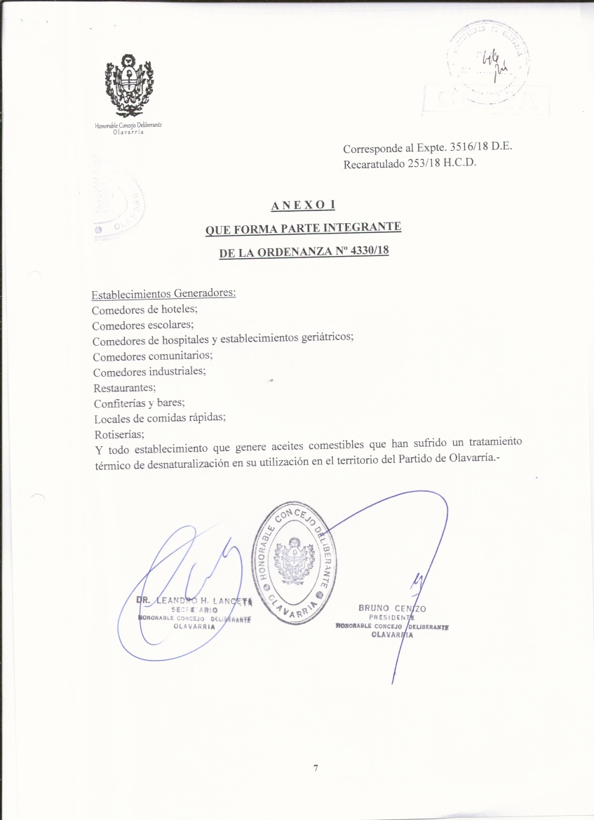 Los comercios gastronómicos que generen como residuo aceite vegetal usado o grasa; cualquier actividad comercial incluida en el Anexo I de la ordenanza municipal 4330/2018.